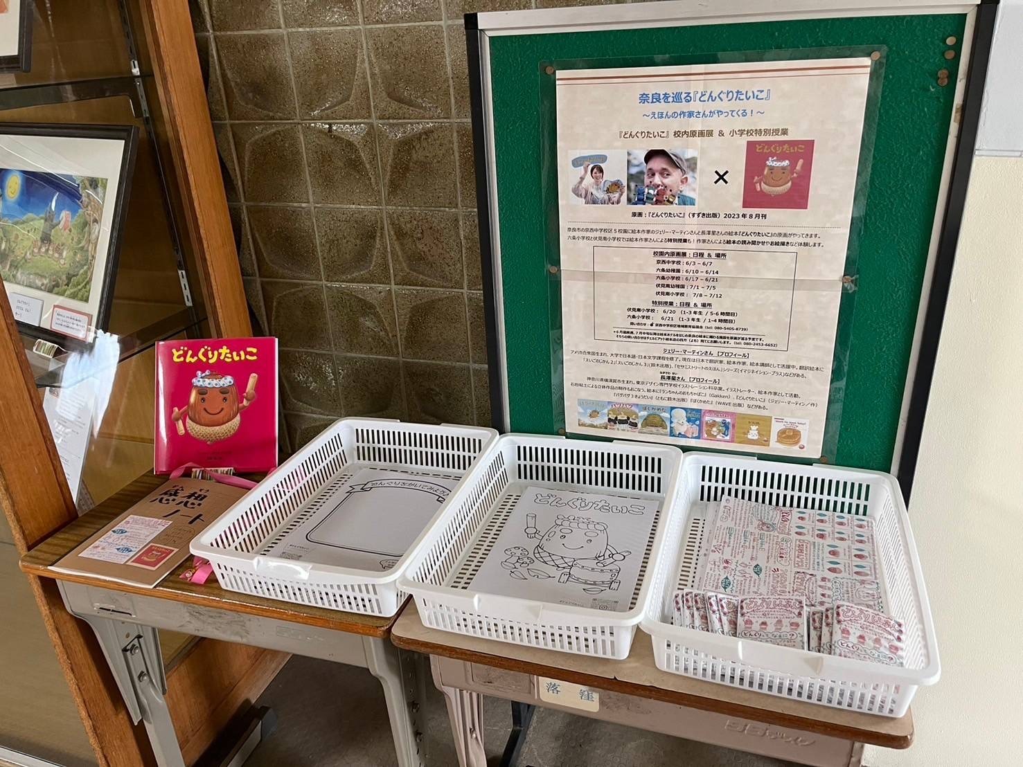 これから奈良京西校区内の5校園を約1ヶ月かけて原画が巡回していき、その後7月後半からは市内だけではなく奈良県内の図書館や絵本カフェなど絵本に纏わる施設を原画が巡ります。