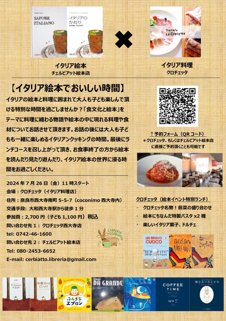 7月26日(金)、奈良のイタリア料理店「クロチェッタ」様(トラットリア ラ クロチェッタ)でイタリアの