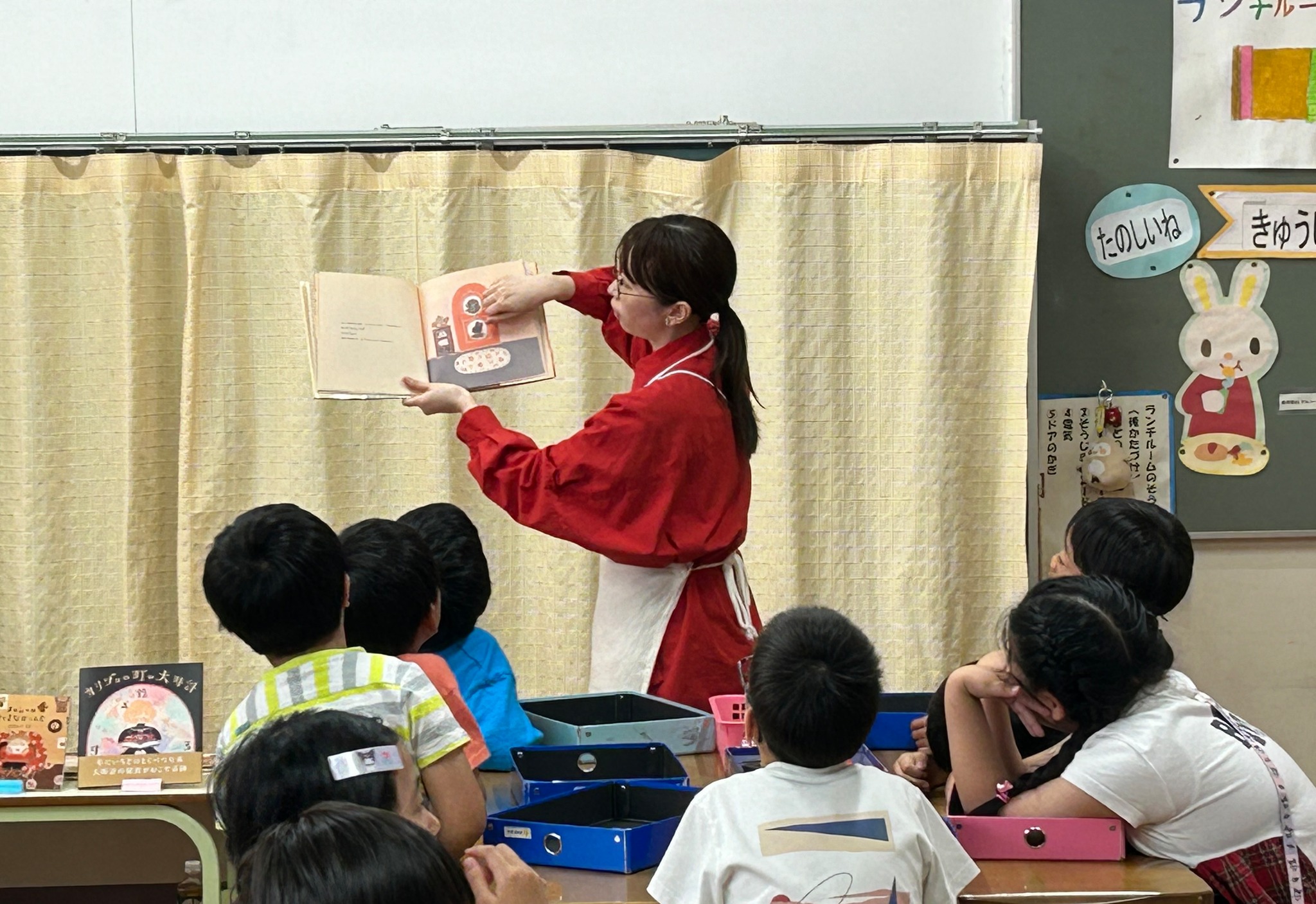 3年生には絵本の読み聞かせと栞作りのワークショップ。そして学童でもお絵描きと読み聞かせを開催してくださいました。